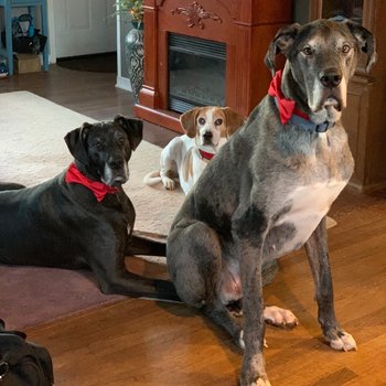 When we met, Chris had his trusty four legged companion, Tuna, and Ben had his "kids", Stella and Titan. Moving in together, therefore meant not only combining wardrobes, but blending our families. From day 1, Titan and Tuna got along famously, but Stella needed some convincing. Thankfully, with the help of the world's best dog trainer, and a month supply of anti-anxiety medication, Stella welcomed Tuna to the family. Today, they are an inseparable pack. We are all one pack, one family, and we couldn't be happier.