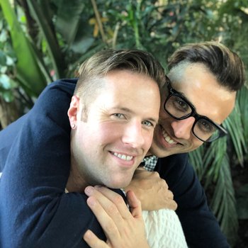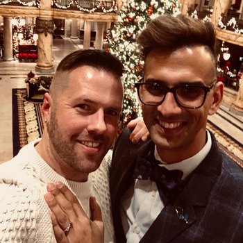 We got engaged on December 5, 2019 - one year after our first date. Ben really wanted to go to Richmond just to "get away for the weekend" and to attend a fancy Christmas party. Chris, with his love of fancy everything, said yes. So, Ben picked up Chris from UVA on his last day of teaching for the semester and they headed to Richmond. Ben was oddly quiet on the drive, while Chris chatted away about his day and munched on cold pizza. Our first stop was to the Lewis Ginter Botanical Gardens to check out their Christmas display of lights. It was stunning, but Ben was upset because it was SPCA day and the Gardens were full of dogs in sweaters (for the record, Ben was upset because he wanted privacy, not because he has anything against dogs in sweaters). Chris was in heaven - Christmas lights with his boyfriend and wiener dogs in sweaters! What could be better? We found a quiet place to take a selfie (Ben, of course had other ideas), and as Chris was getting his smile on, Ben went down on one knee and proposed! Chris ugly cried and said yes! The rest is history!